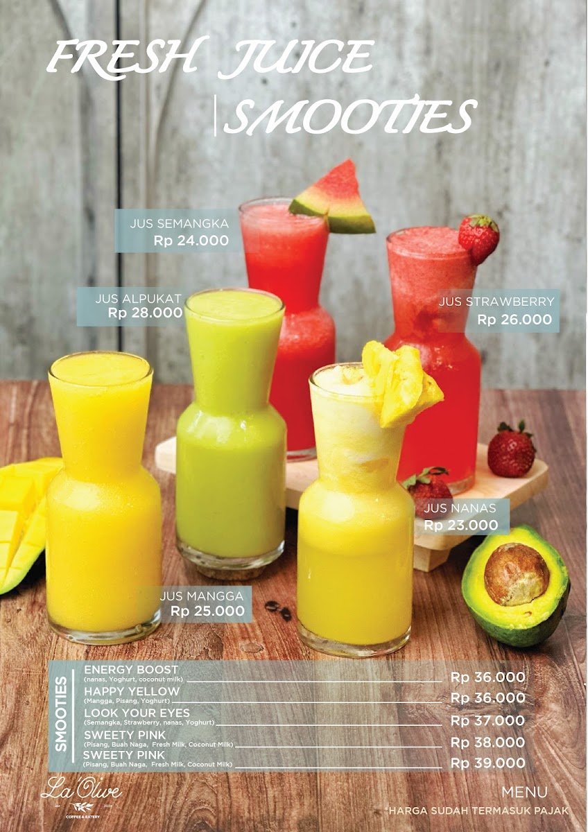 Coffee lovers will enjoy unique offerings like the aromatic Pandan Latte and refreshing Espresso Ice Cube. For those seeking a healthier option, La Olive also serves a selection of vibrant fresh juices and smoothies.